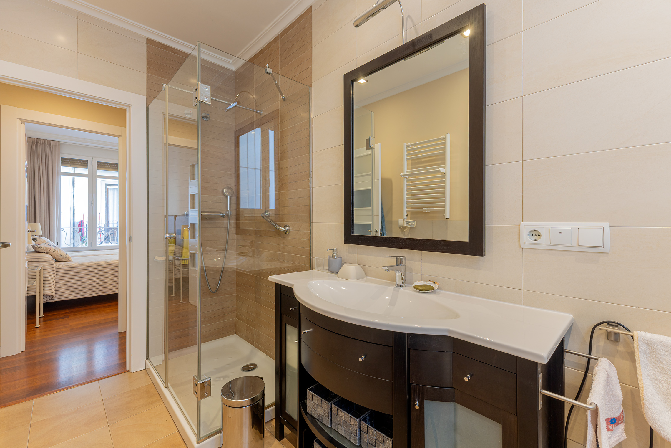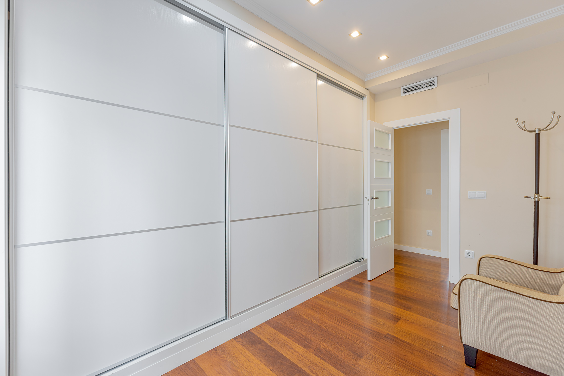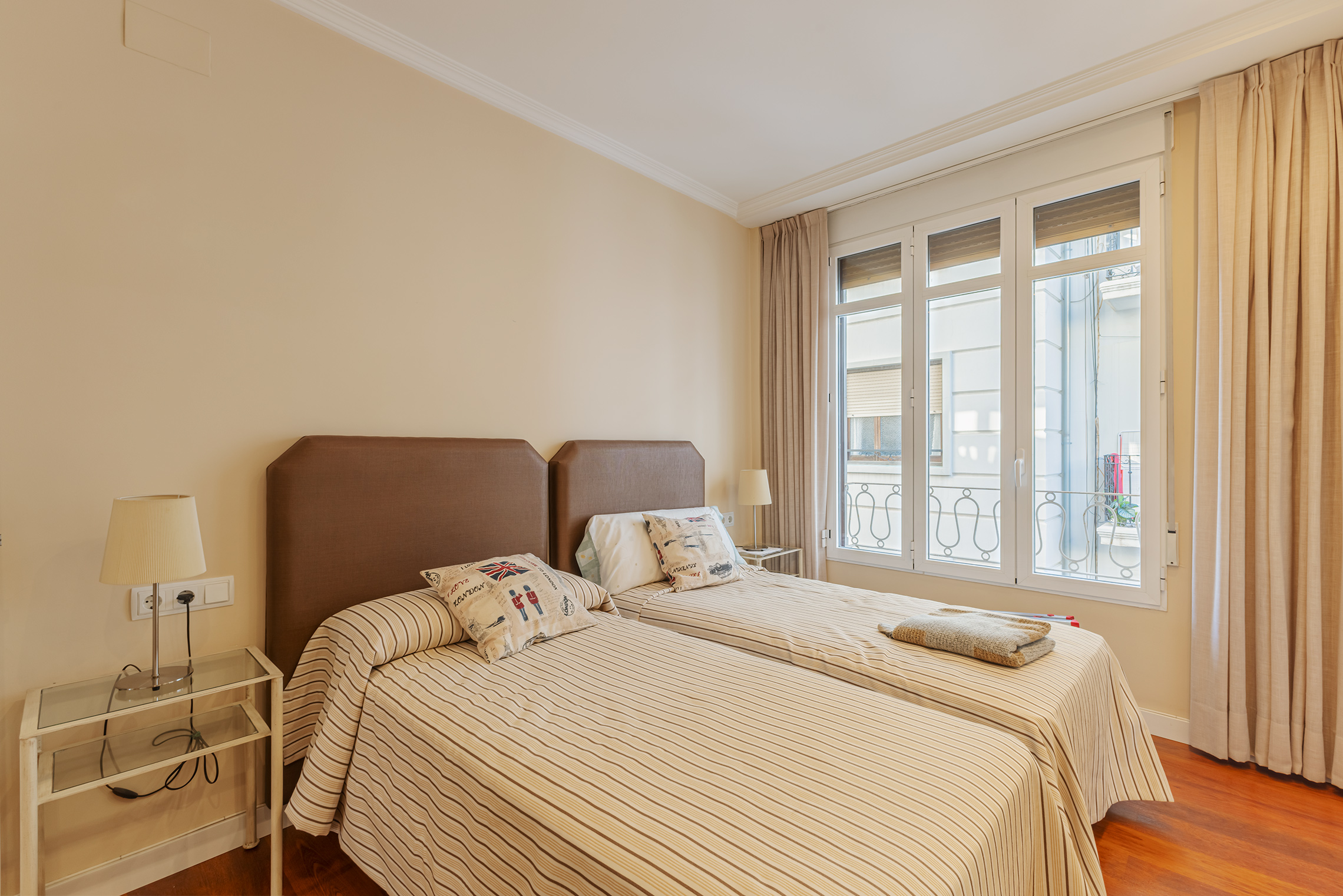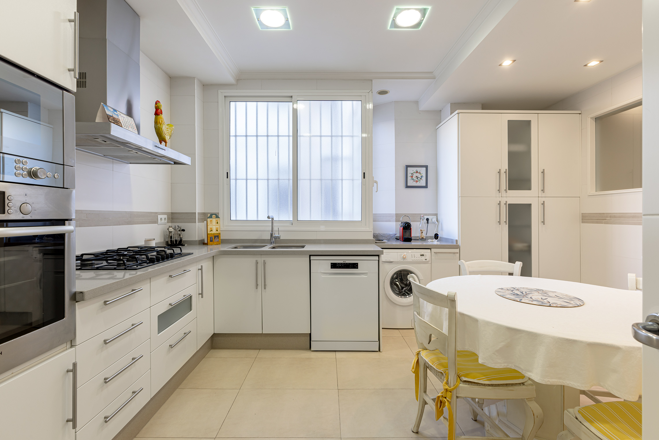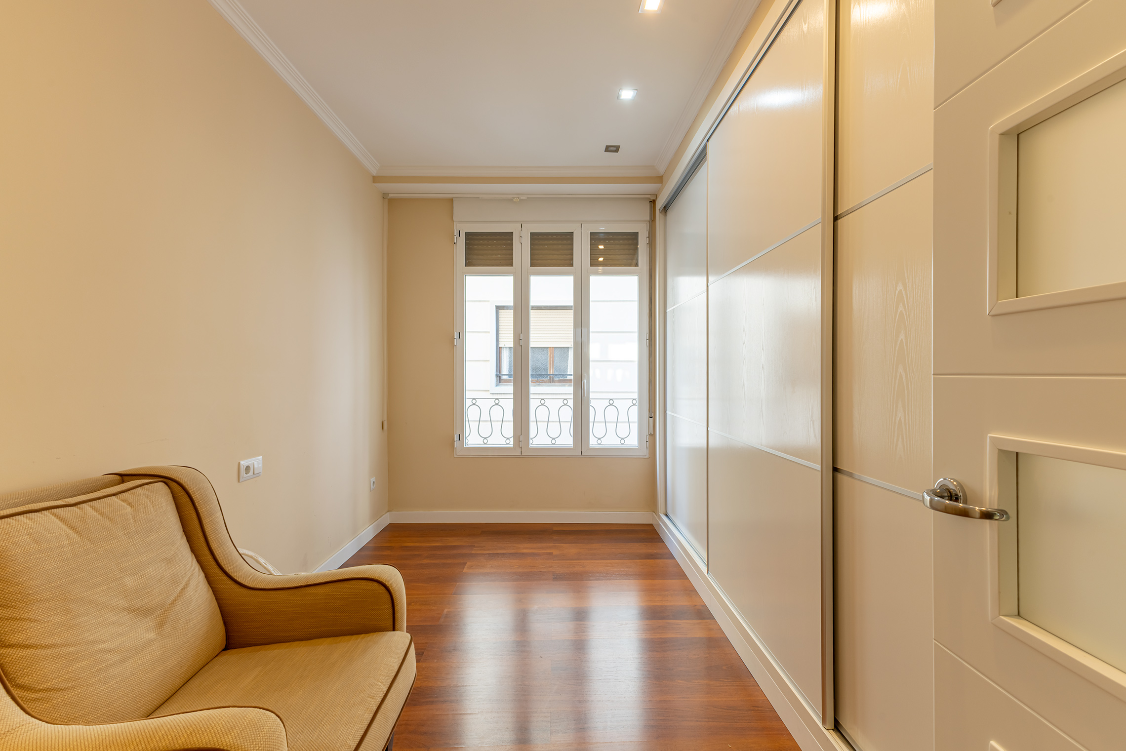 La propiedad destaca por su orientación exterior y la abundante luz natural en sus principales áreas de estar. Cuenta con una sala de estar y un comedor independientes, una cocina amplia y funcional, cuatro dormitorios y dos baños completos. Los espacios son cómodos y están bien proporcionados, adaptándose fácilmente a las necesidades de una familia. Fue completamente renovada en 2007, conservando un estilo atemporal que aún hoy resulta actual. El suelo de parqué aporta calidez, las paredes lisas amplían la sensación de espacio y las puertas pivotantes introducen un elemento distintivo con un sutil toque contemporáneo.