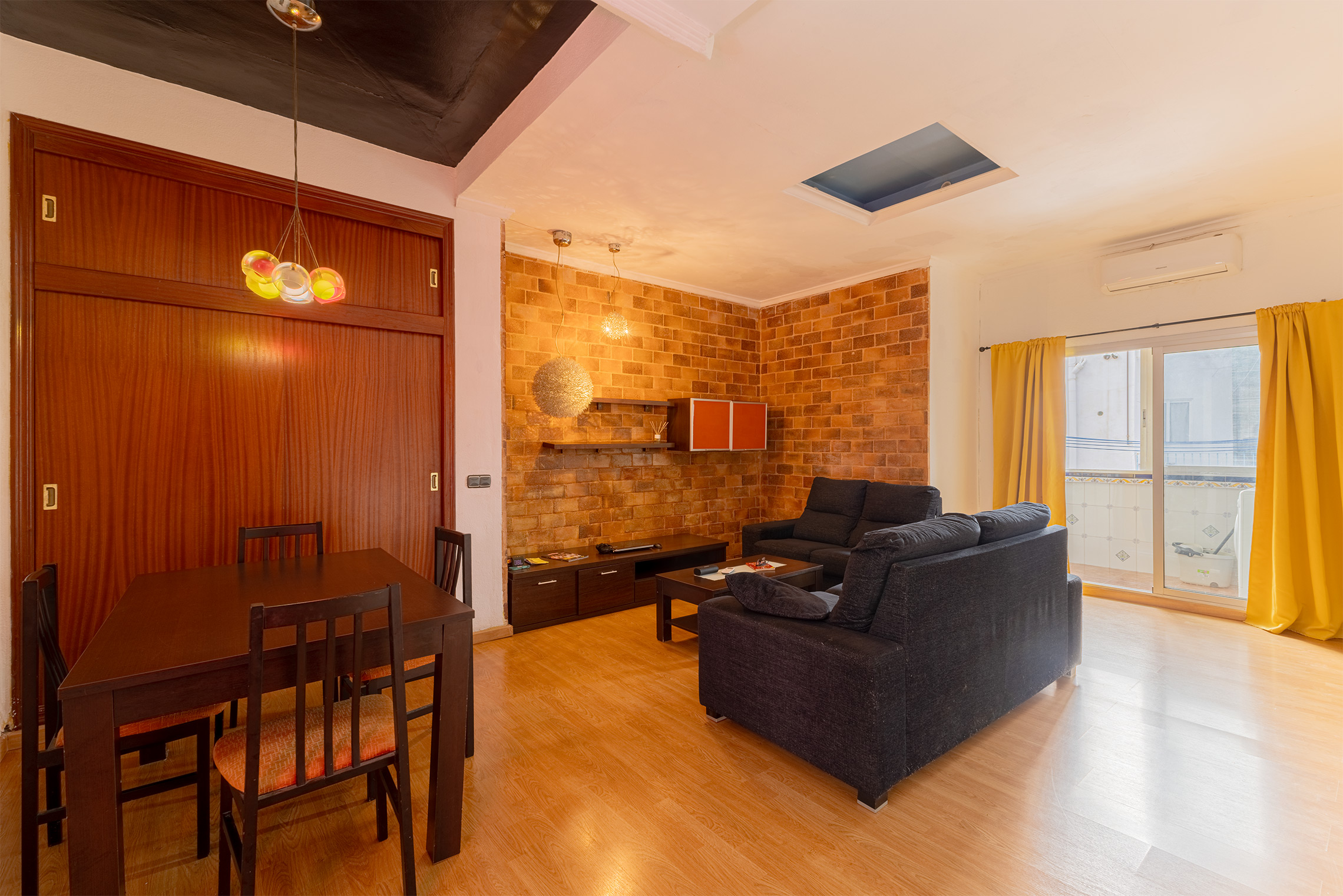 The apartment features a functional layout with two bedrooms, a full bathroom, and a living-dining room with access to a balcony, perfect for enjoying the vibrant atmosphere of the neighbourhood. Original ceilings of 3.90 meters provide a sense of spaciousness and a distinctive style typical of traditional Eixample homes in Valencia.
