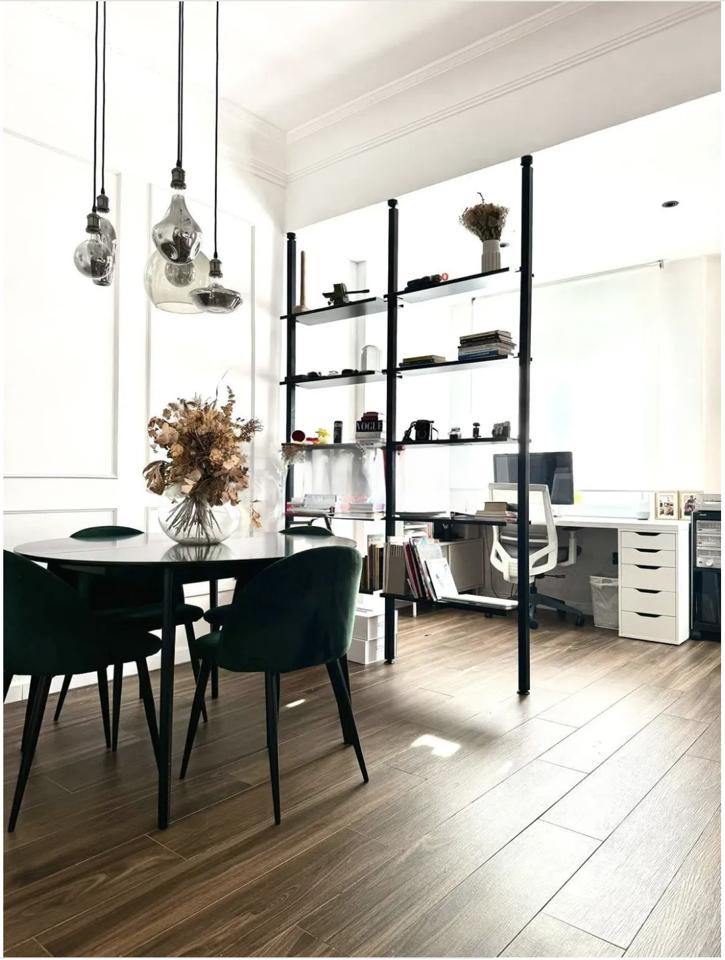 This bright and peaceful sixth-floor residence offers 156 m² of built space (148 m² usable) in the heart of the city. The home features three bedrooms, including a master suite with a striking designer bathtub positioned beside a large window, complemented by decorative curtains and built-in wardrobes. The two additional bedrooms are spacious and filled with natural light, making them perfect for guests, family, or use as a home office.