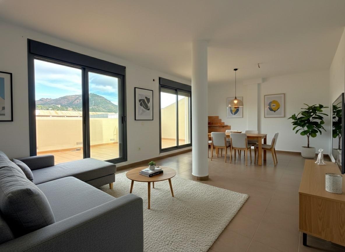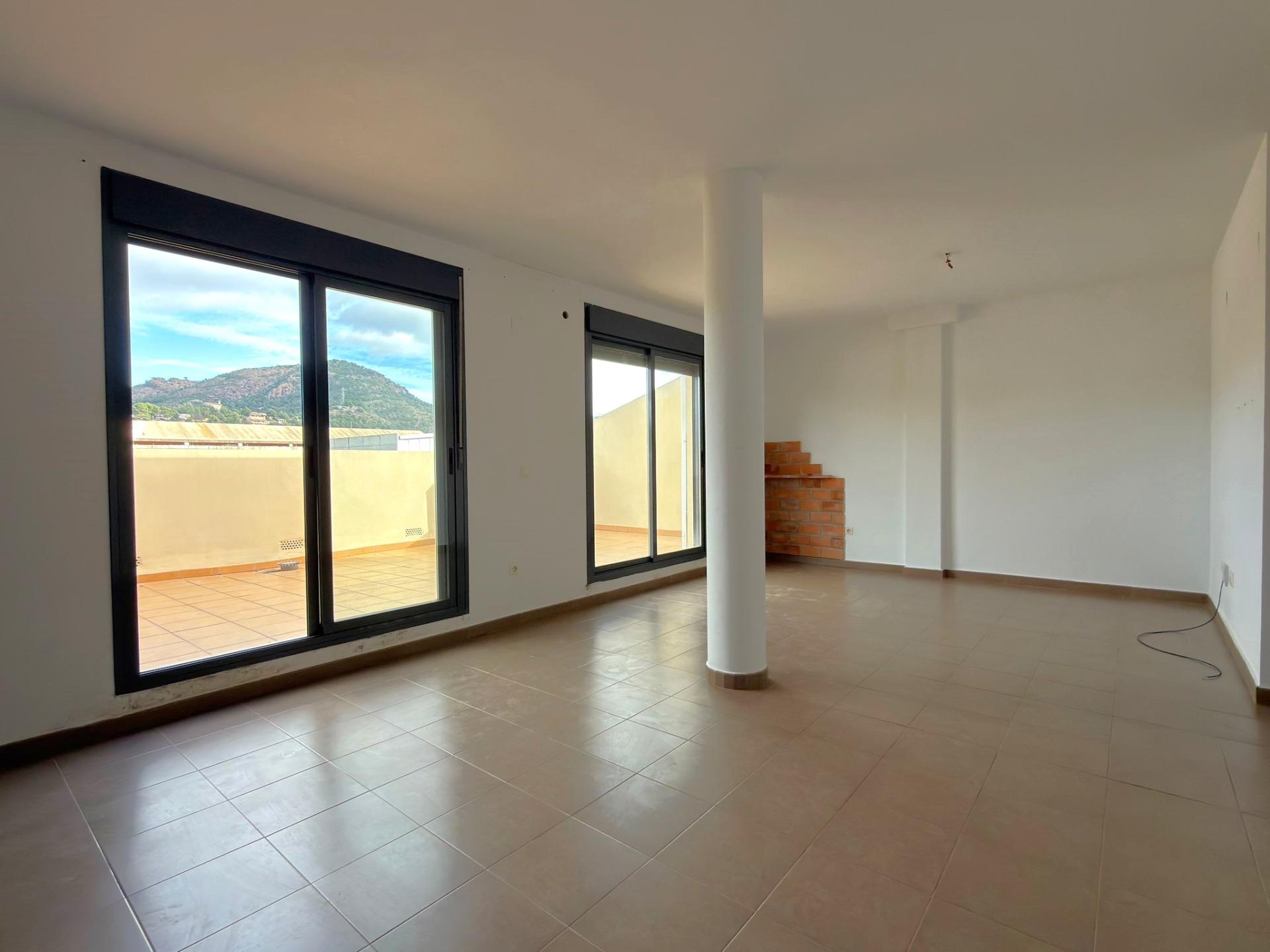 Penthouse with over 100m2 of terraces, a parking space, and a storage room, located in a residential complex very close to the town center and with a communal swimming pool. Built in 2008, the apartment has 84m2 of living space, distributed into two bedrooms and two bathrooms (one en suite), a kitchen with a utility room, and a large living-dining room of almost 30m2 with access to a lovely 26m2 terrace. As if that weren't enough, directly above the apartment is a second terrace, this one with the same area as the apartment itself, 84m2, accessed via a spiral staircase located on the first terrace. All this with spectacular 360º views of the mountains and even the Bay of Valencia. Don't miss the opportunity to visit this property!