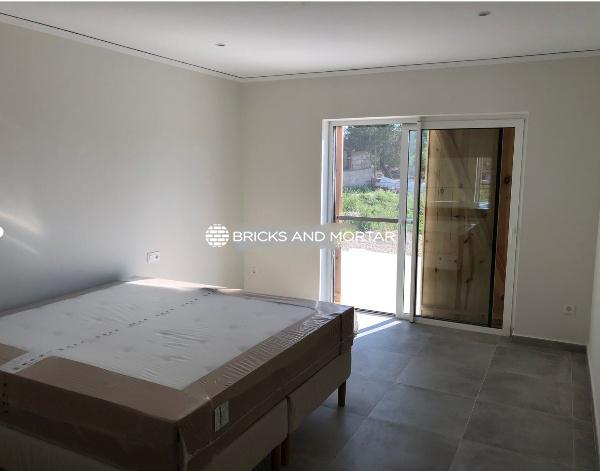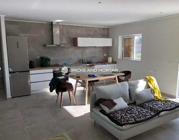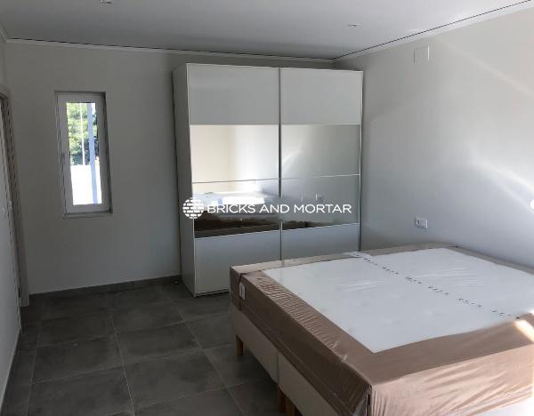 The villa comes equipped with a modern kitchen, a contemporary bathroom, and brand new, unused furniture. The property boasts a total of 96 square meters built, with 89 square meters of usable space, offering two bedrooms and one bathroom. Additionally, it features a 1,845 square meter plot, a terrace, a balcony, and a parking space included in the price.