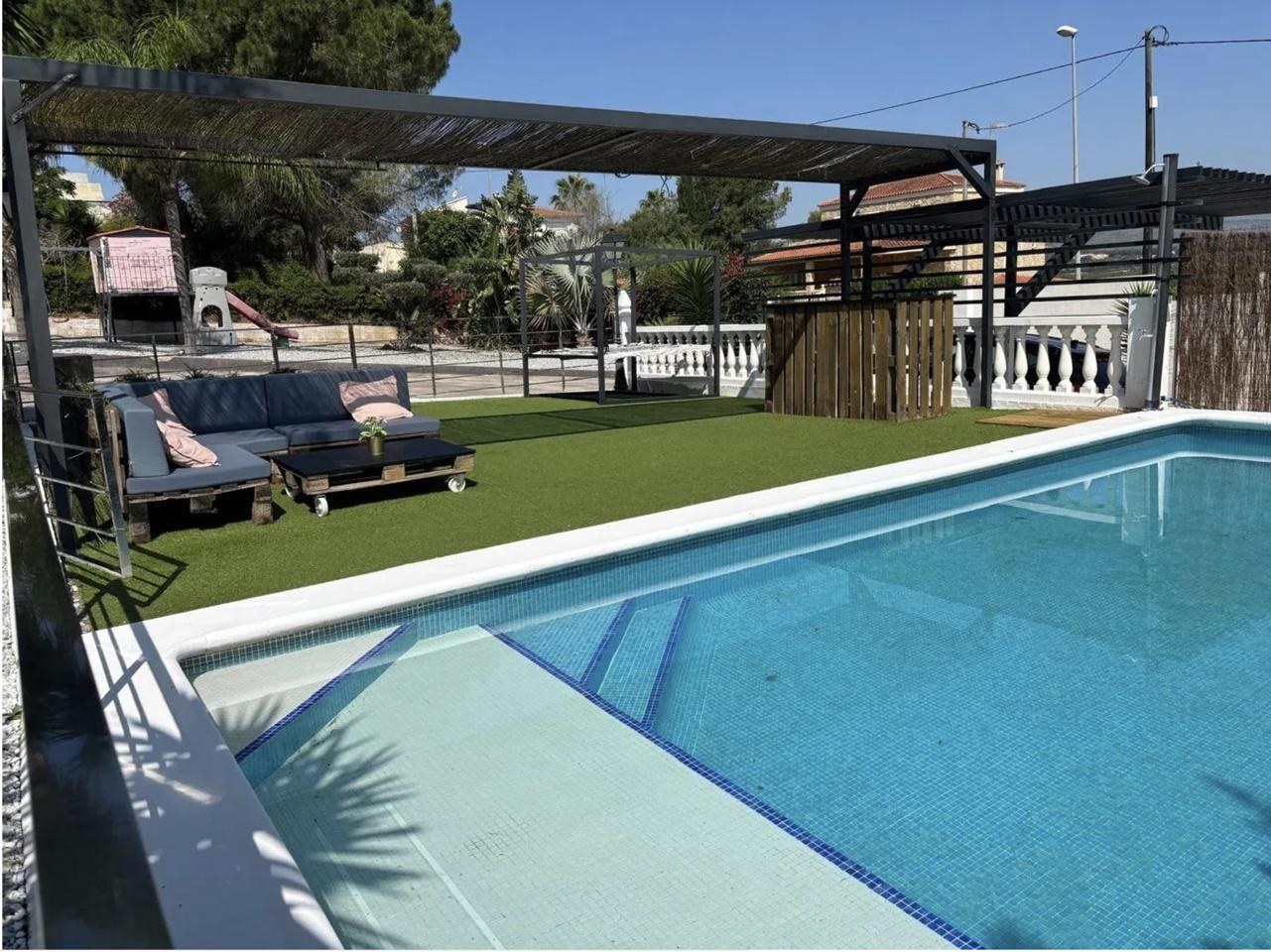 The outdoor area is exceptionally well-equipped, featuring a *paellero* and barbecue area, and an 8x4 metre swimming pool complete with a splash pad and whirlpool section. The property is surrounded by stainless steel fencing, ensuring security and durability.