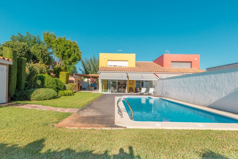 Beautiful house on Pinar Beach!!! Welcome to this real estate gem in Grao de Castellón, where luxury meets comfort in a privileged location! Imagine waking up every morning surrounded by the serenity of the golf course, just a step away from the sea breeze of Gurugu Beach. This spectacular house, set on a 575-square-meter plot, offers you a dream life in one of the most coveted locations in the region. With a modern design and large windows that flood the spaces with natural light, this residence has everything you need to live in style and comfort. Stepping inside, you'll find four cozy bedrooms, all equipped with built-in wardrobes, ensuring ample storage space. Additionally, you'll enjoy three elegant and functional bathrooms, as well as a large separate kitchen, perfect for unleashing your culinary creativity. The heart of the house is its bright living-dining room, where you can relax and share unforgettable moments with your loved ones. Can you imagine enjoying al fresco dining? With this property, it's possible! The patio, with its lush vegetation and a cozy barbecue, is the ideal place to hold gatherings and revel in the Mediterranean climate. But that's not all. Immerse yourself in the freshness of your private pool, surrounded by a manicured garden, and let the stress of everyday life dissolve in the water. Additionally, for your comfort, the house has air conditioning and central heating, ensuring a perfect environment at any time of the year. With everything ready for you to move in immediately, this property is more than a house: it's a lifestyle. Are you ready to take the step towards your dream home? Contact us today and make your vision of Mediterranean living in Grao de Castellón a reality! Price: 943,560 € Reference: 0396 Town: Castellon-Castellon de la Plana Area: El Grao Orientation: East :: West Built: 228 m2 Useful: 200 m2 Plot: 575 m2 Conservation: Good condition Year of construction: 2004 Bedrooms: 4 Swimming pool: Yes Private pool: Yes Garage: Yes Storage room: Yes Air conditioning: Yes Heating: Central Type of floor: Ceramic Gress Windows: Aluminum : Extras Built-in wardrobes Armored door Garden Barbecue Featured views Bus nearby