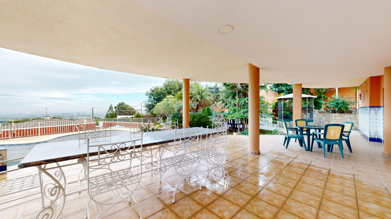 A high-end detached villa in the best area of Calicanto, with 480 m2 of living space and a 1,458 m2 plot. To infinity and beyond! This is the first phrase that came to mind while photographing this home, and it perfectly sums up the views from every corner of the house. A plot with excellent views, you'll fall in love. On 1458m2 we find a complex of two independent houses, main house plus another complete house, paddle court, barbecue, garage, beautiful and original swimming pool and different recreational areas Located in the Cumbres de Calicanto urbanization, in the sought-after area of Santo Domingo, just a few meters from the Levante school, is this plot with robust construction of very high quality, one of the reasons that makes it attractive - First home with access to Calle Puerto de los Leones The entire villa has completely unobstructed views of the east. It consists of 4 floors, on the ground floor we have a gym, full bathroom, storage room and water treatment room 1st floor: 1 large bedroom, 1 full bathroom, laundry room, kitchen, pantry, utility room and a very large living room with access to the large terrace and pool 2nd floor: 1 bedroom with full en-suite bathroom, large kitchen, toilet and a huge living room divided into 3 different areas, with fireplace and access to another independent terrace with spectacular views and over the pool 3rd floor: 3 bedrooms, the master bedroom has a private terrace and en-suite bathroom, the second bedroom shares a bathroom with the third, and both have a private terrace. - The second building is another home with access from Puerto Pajares Street and is distributed as follows: Two large offices, a full bathroom, a storage room, and a garage for 6 vehicles. - In common they have a paddle tennis court, a barbecue with a closed kitchen, a large swimming pool, and garden areas with ornamental plants and fruit trees. We know that there are several important factors when buying a home, but above all, the location is the most important because it is obvious that any other detail of the house can be modified, updated, or adapted to the taste and needs of its owners, but, for now, the location is characterized by its invariability. So analyzing the location of this house we can say that it has it all, magnificent orientation, next to the sought-after Levante school, an established area destined for first homes and where lifelong neighbors live with those who have come attracted by a relaxing environment, residing all year round since it is close to all services. Don't wait any longer, we can exclusively show you this luxury home in a privileged environment. Price: € 1,970,000 Reference: c466 Town: Chiva Orientation: East Built: 560 m2 Useful: 448 m2 Plot: 1458 m2 Conservation: Good condition Year of construction: 2003 Bedrooms: 5 Pool: Yes Private pool: Yes Garage: Yes Storage room: Yes Type of floor: Ceramic Gress: Extras Terrace Built-in wardrobes Armored door Light Light Garden Barbecue Featured views Bus nearby