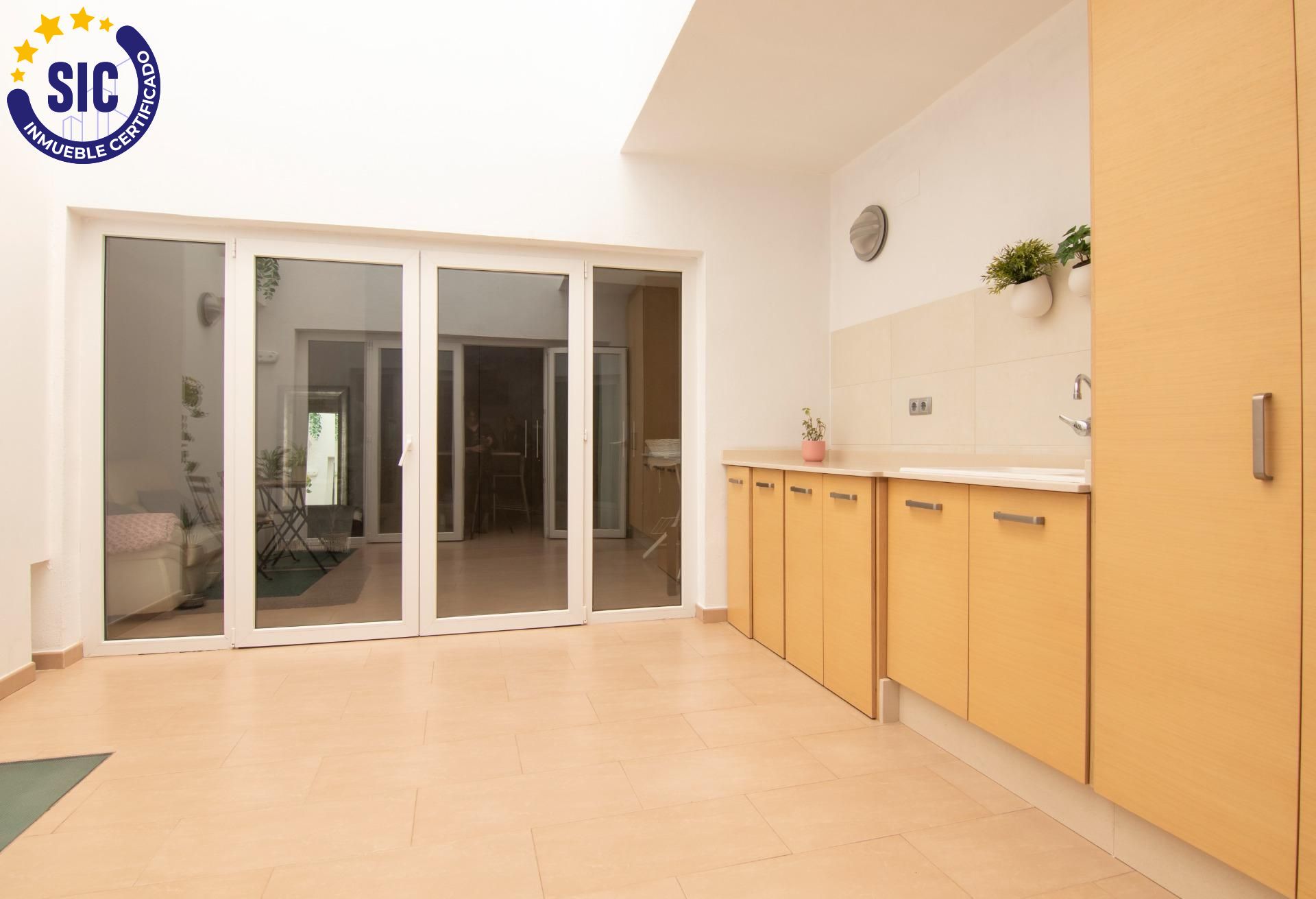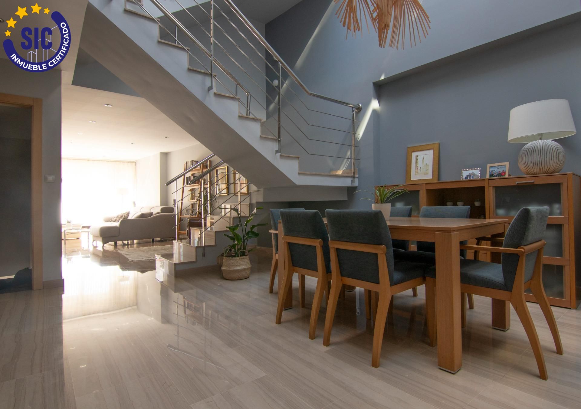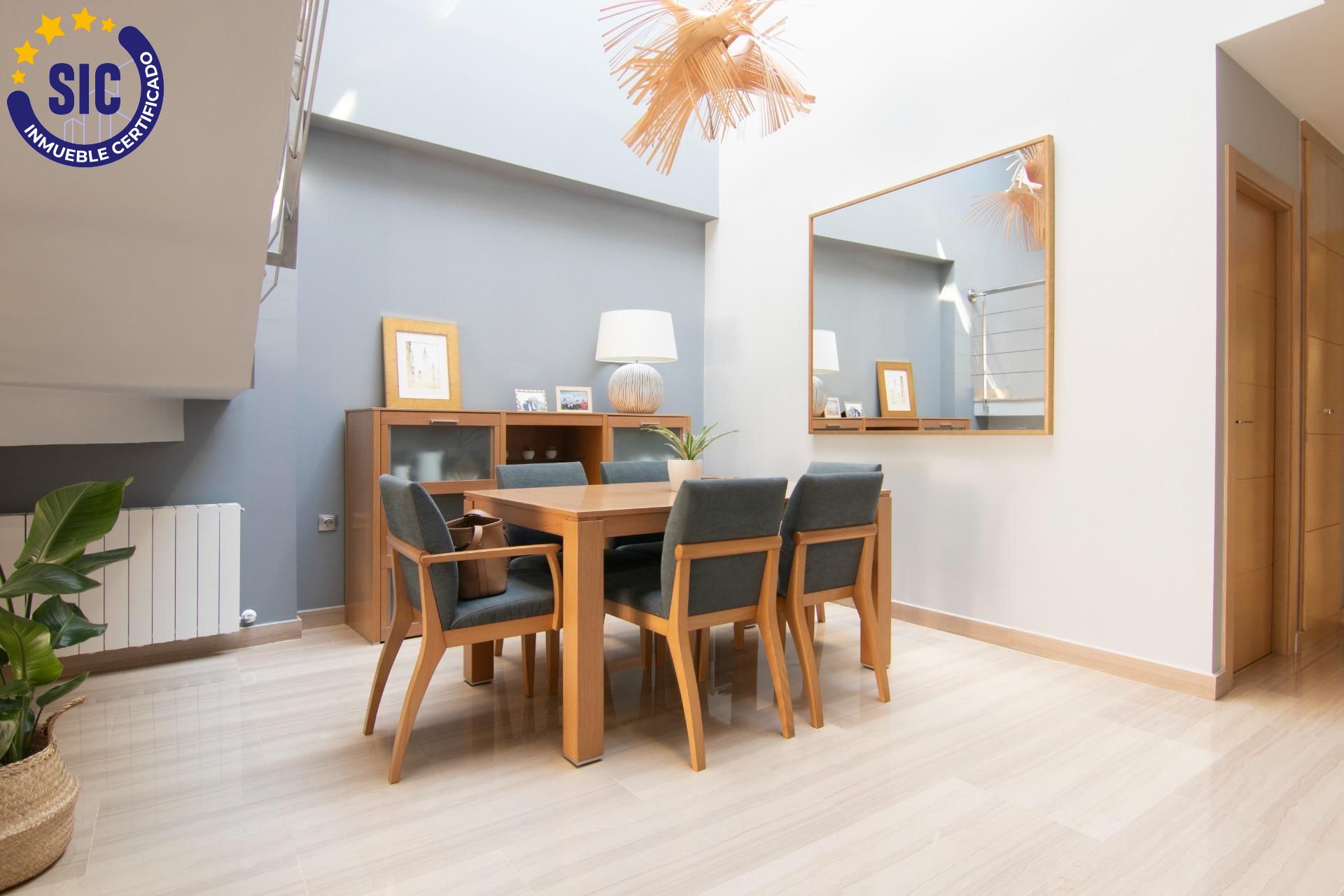 The first floor is highlighted by an elegant staircase leading to a bright living room with large windows and privileged views of the park. The modern, functional open-plan kitchen integrates seamlessly with the social area and provides direct access to a charming interior patio, perfect for relaxing or enjoying meals outdoors.