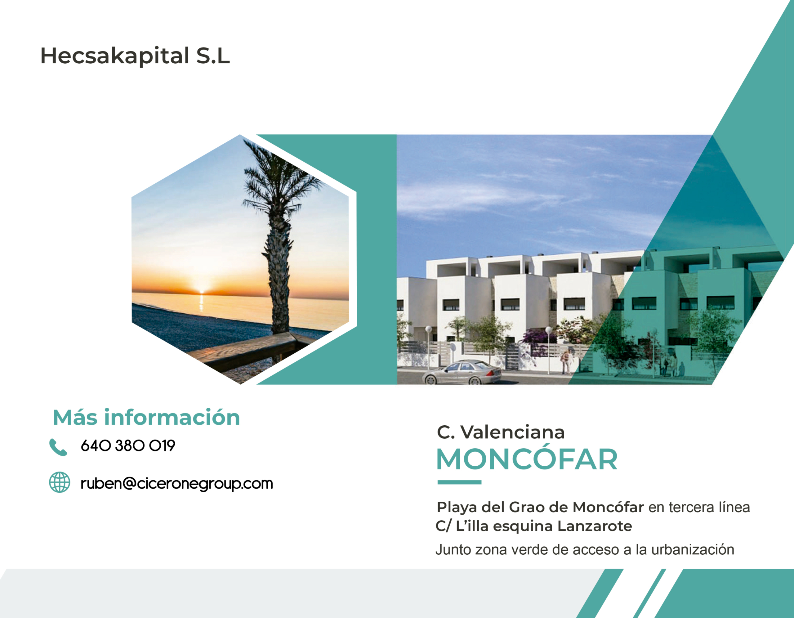 In the town of Moncofar in Castellón, one of the most expanding areas of the Valencian coastline, just a few metres from the beach, in a residential area with all kinds of services and accessibility, just half an hour from the city of Valencia, is this new development that will begin construction at the beginning of 2023.