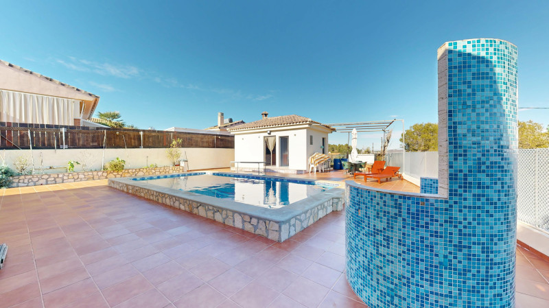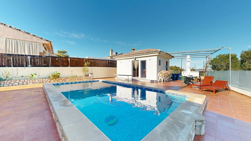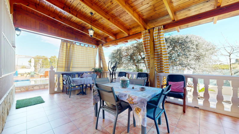 Detached villa in a gated community with a pool, ready to move in. A home to enjoy every day in Alt de Montserrat, a residential area just 20 minutes by car from Valencia. Imagine waking up each morning surrounded by tranquility, space, and light. This detached villa, located in the exclusive Alt de Montserrat residential area, is not just a house; it's the place to create memories, celebrate special moments, and live with the peace you've always longed for. With 375 m² of living space on a 773 m² plot, this house offers the perfect balance between interior spaciousness and outdoor living. Its private pool becomes the heart of the home during the warmer months: summer afternoons, laughter, family meals, and moments of complete relaxation. The property features solar panels, a cistern, a paella cooking area, a fireplace, a motorized gate for vehicle access, and a large covered garage. The interior is designed for family enjoyment, with 5 spacious bedrooms and 4 bathrooms, providing each member with their own private retreat, while still offering ample and inviting common areas to share. The garden and outdoor spaces invite you to slow down, enjoy the peace and quiet, the sunshine, and the privacy that only a detached home can offer. Here, time moves at a different pace. A home to grow, relax, and enjoy life in a safe, residential setting surrounded by nature, yet with easy access to the city and year-round neighbors. If you're looking for more than just a house, you've found it here. Contact us and come experience it for yourself; we'll guide you through the entire buying process. If you need to sell your current property beforehand, call us, and we'll advise you on how to do so while minimizing expenses and ensuring a smooth transaction. Price: €419,900 Reference: C484 Town: Monserrat - Montserrat Orientation: North::South::East::West Built: 375 m2 Usable: 350 m2 Plot: 773 m2 Condition: Good Year of construction: 2008 Bedrooms: 5 Swimming pool: Yes Private pool: Yes Garage: Yes Storage room: Yes Heating: Wood or coal Flooring type: Ceramic Tile Extras Terrace Built-in wardrobes Security door Electricity Garden light Barbecue