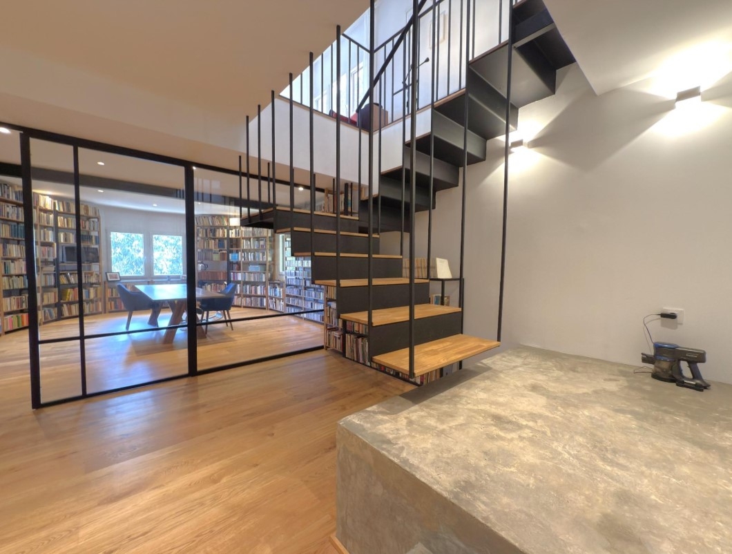Connected via a stylish internal staircase, the lower floor offers a library, one shared bathroom, two double bedrooms with en-suite bathrooms, and a second covered terrace mirroring the one above. An additional en-suite bedroom can be added with minimal effort.