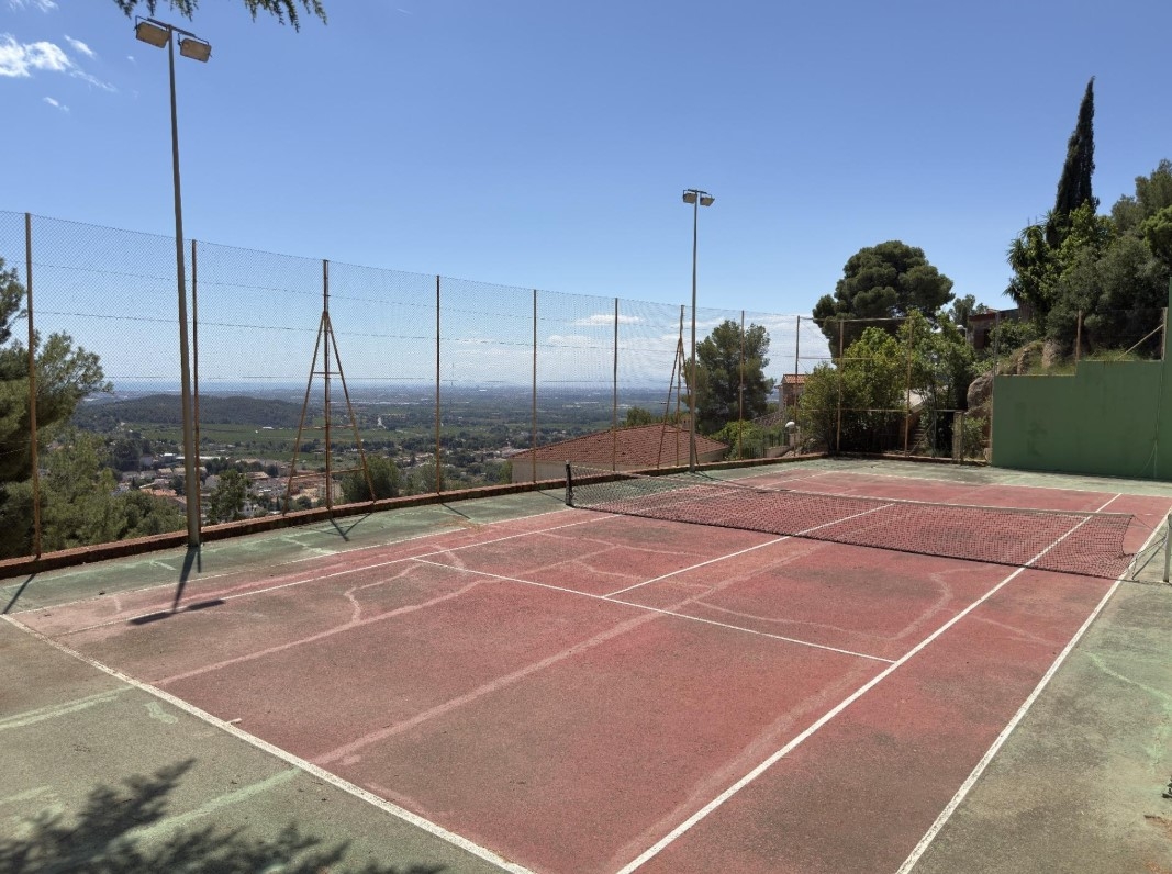 The property sits on a generous 2,821 m² plot and includes a private tennis court and swimming pool. The total built area is 360 m², and the villa was fully renovated just three years ago using premium materials.