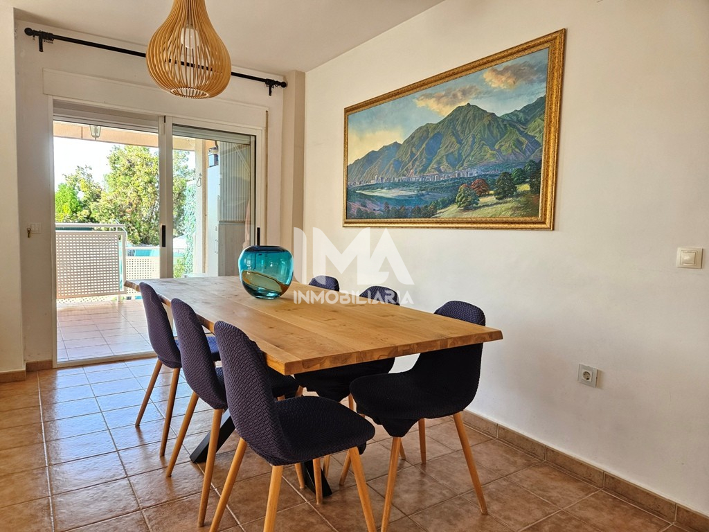 It is distributed over two comfortable floors plus a basement with ventilation and natural light. On the first and main floors, there is a living-dining room with a fireplace and large windows that connect to the terrace, overlooking the back of the home and the pool. There is a kitchenette and a bathroom with a shower. We access the second floor via the staircase opposite the entrance hall. This floor includes two bedrooms with built-in wardrobes and a full bathroom. From here, there is also access to a sun terrace with beautiful views. The basement includes two spacious rooms (perfect as bedrooms, an office, or a playroom) and a practical storage room.