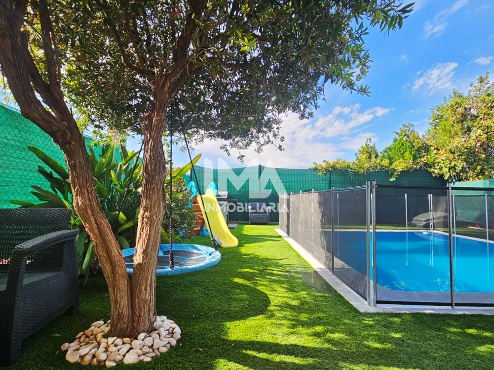 Dream Properties offers this charming semi-detached house located in a quiet residential area, close to the centre of La Pobla de Vallbona. Enjoy the convenience of having all services within reach, including supermarkets, as well as areas for walking, sports, or relaxing just minutes from your home. The property boasts a 293 m2 plot, a well-kept garden with low-maintenance artificial turf, a pool fenced by Securbaby, with Roman steps and an outdoor shower, and next to the barbecue area. The home has a total of 158 m2 of built area, 136 m2 of which are used as living space. It is very bright, spacious, and inviting. It stands out for its brightness, spaciousness, and cosy atmosphere.