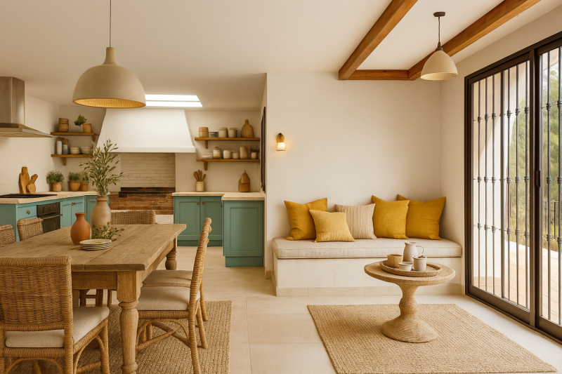 The house offers 336 m² of built space, with generous, bright interiors designed for family life or entertaining friends. You’ll find six double bedrooms, two bathrooms, and spacious living rooms with large windows that flood every corner with light. All areas are connected by a practical, well-designed staircase.